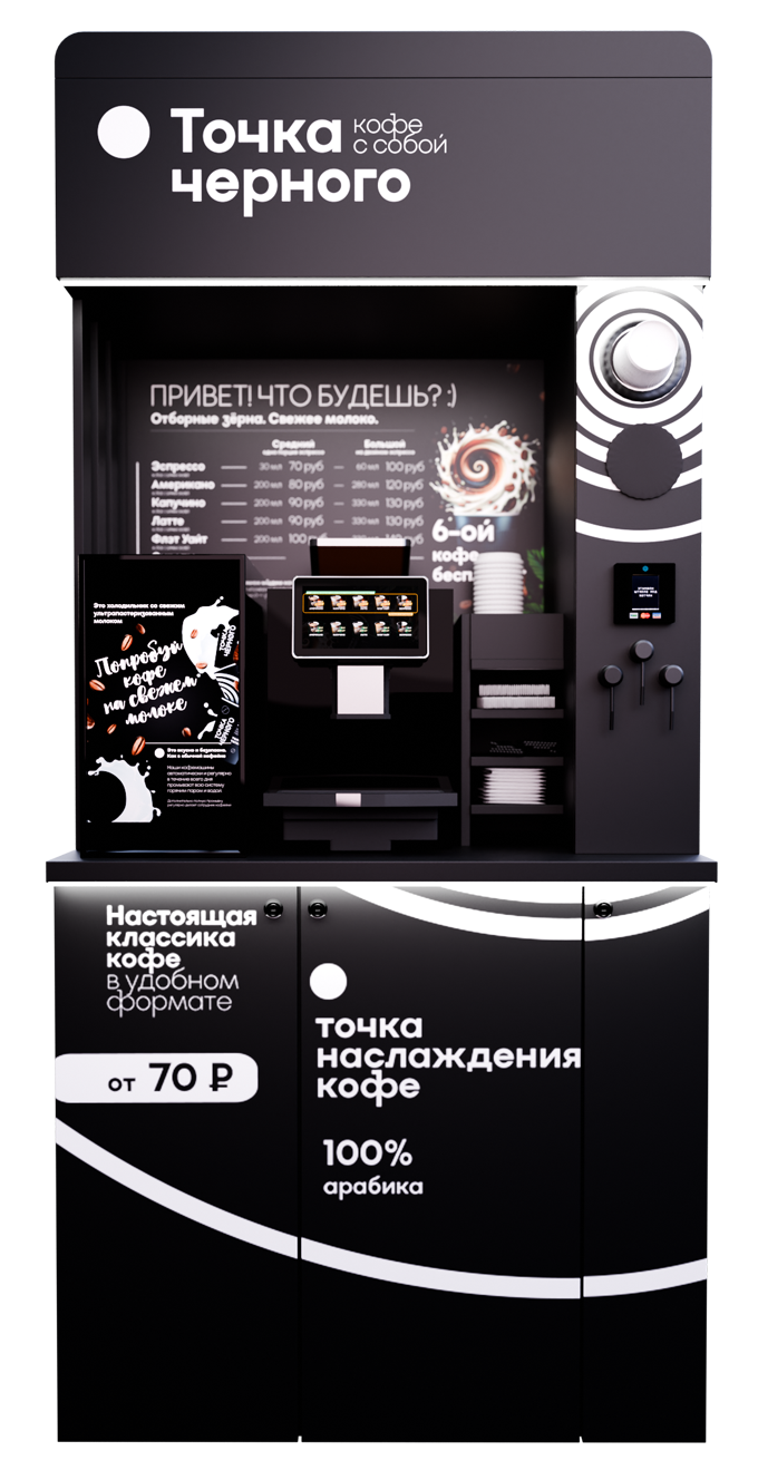 Новый формат кофе — на смену старым вендингам пришла красивая стойка с профессиональной кофемашиной, бесплатными сиропами и напитками, разработанными профессиональными бариста