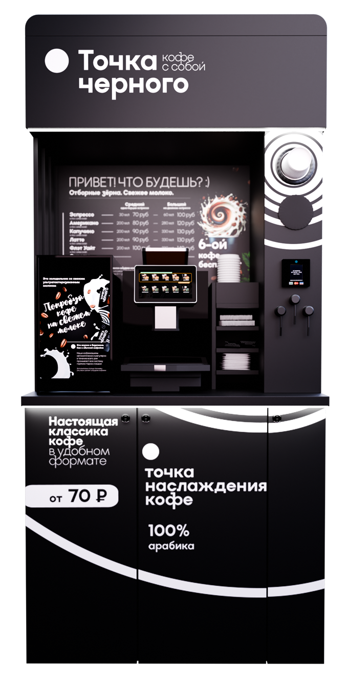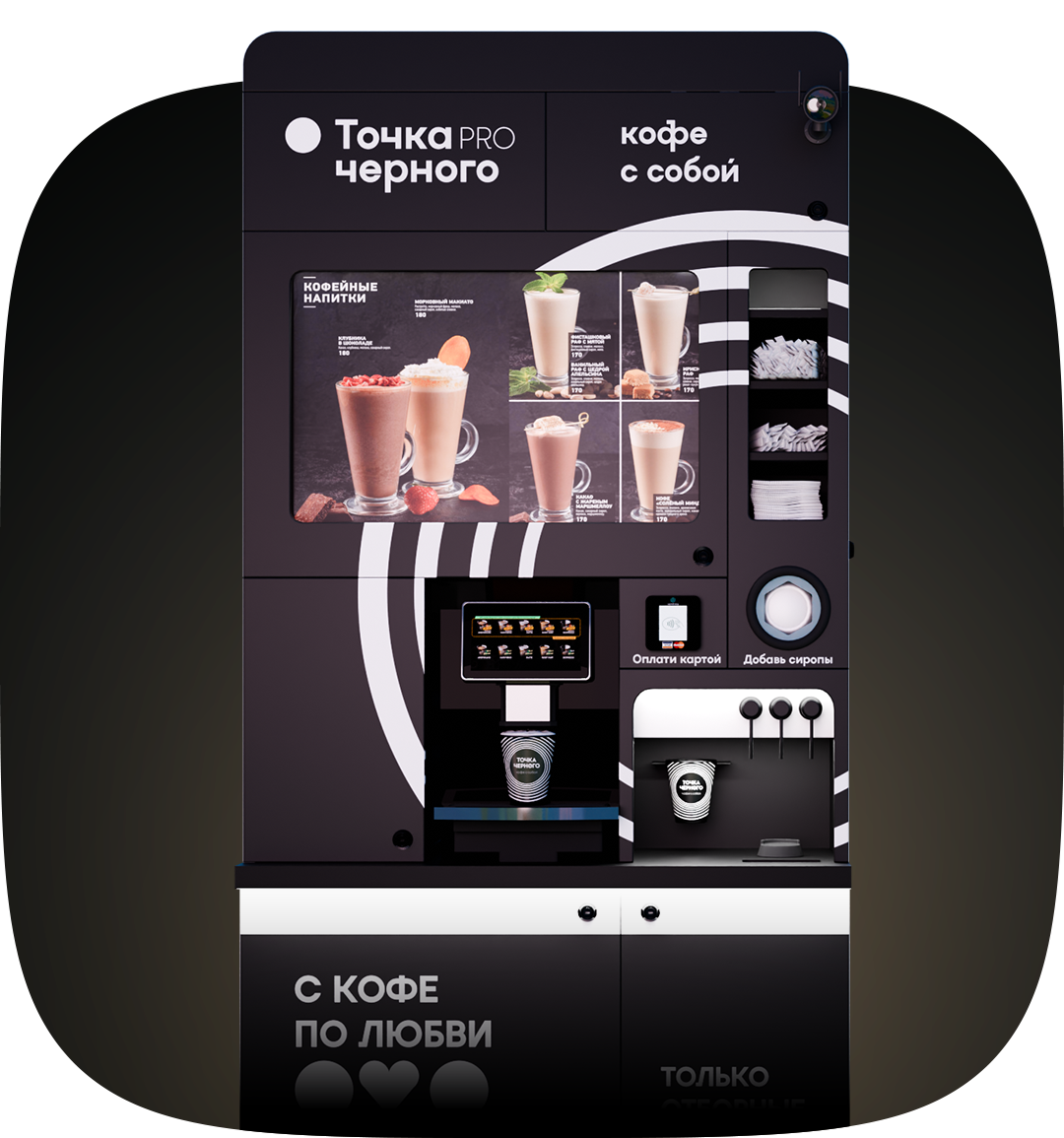 Новый формат кофе — на смену старым вендингам пришла красивая стойка с профессиональной кофемашиной, бесплатными сиропами и напитками, разработанными профессиональными бариста